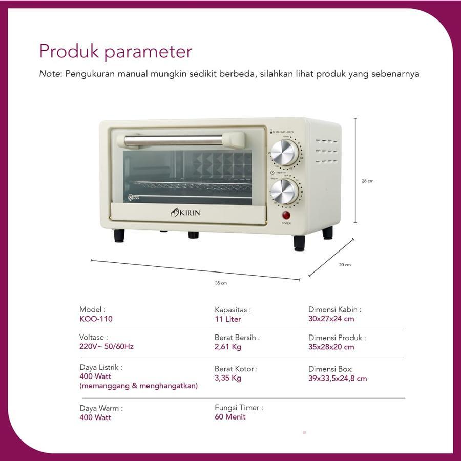 Oven Listrik+ Microwave Kirin KOO-110 Wiath Heat Lock Kapasitas 11 Liter