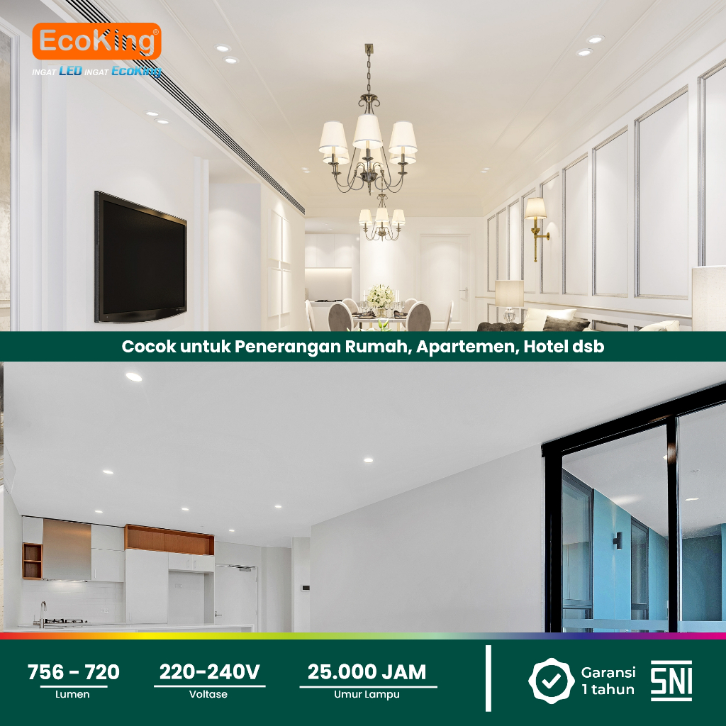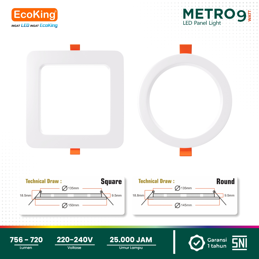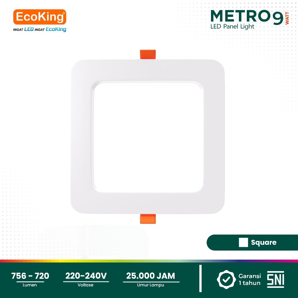 EcoKing LED Metro Inbow Panel Light Downlight Lampu Plafon Rumah 9W 4 Inch Square / Round Cahaya Putih / Kuning (EPL3109