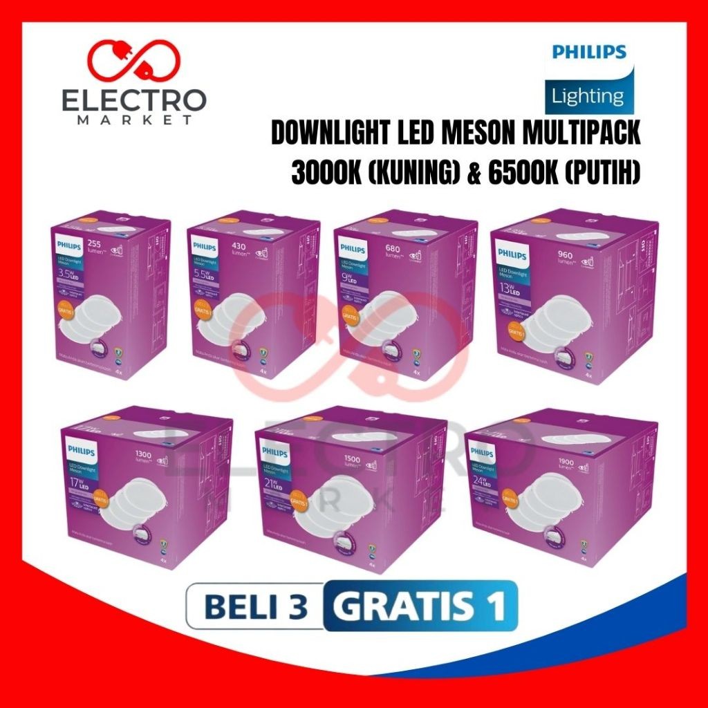 PHILIPS Downlight MESON Multipack 3,5W 5W 9W 13W 17W 21Watt 24 Watt 3000k 6500k (Beli 3 Gratis 1)