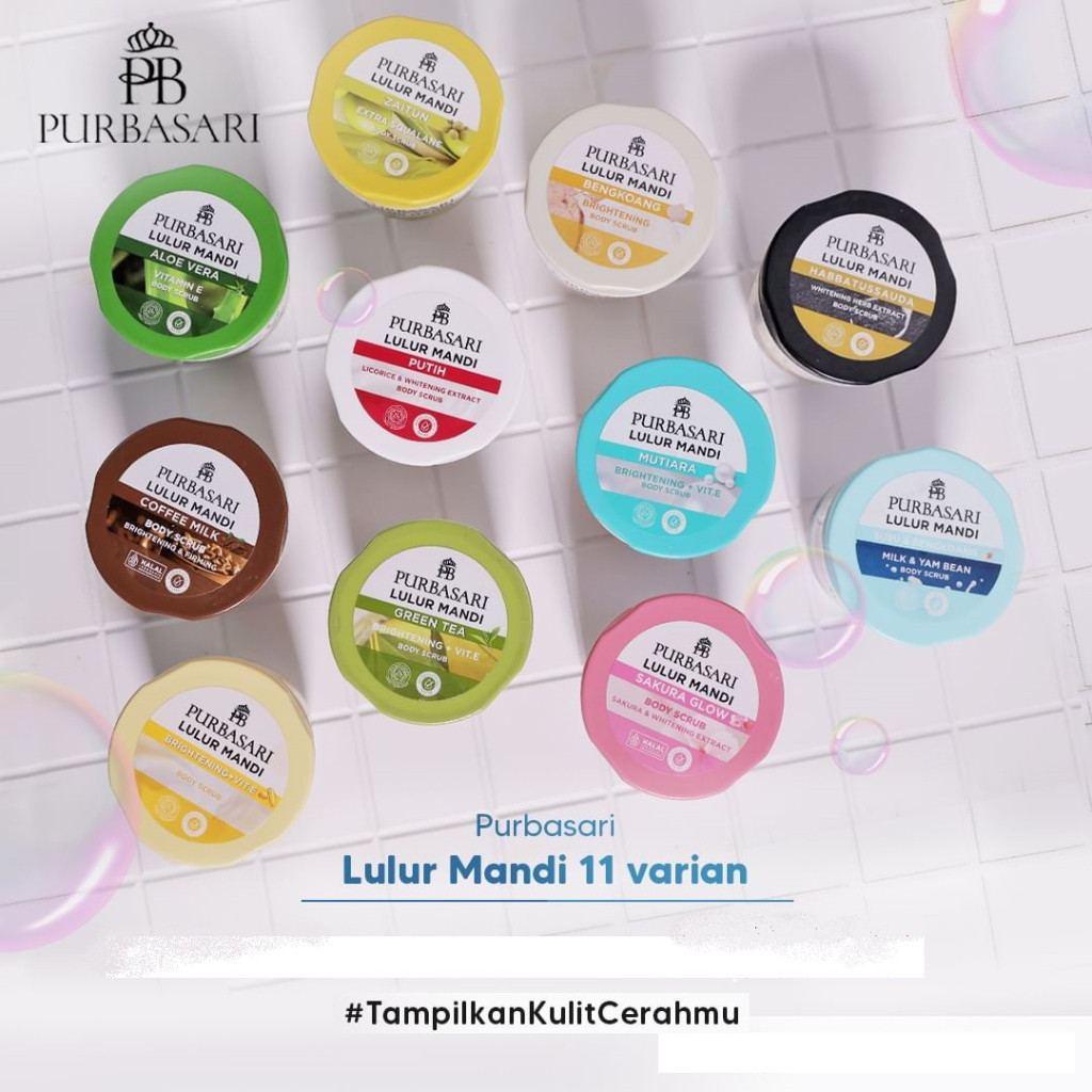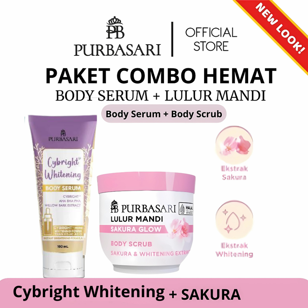 [Paket Hemat Combo] Purbasari Body serum White Glow 180 ml + Lulur Mandi Body Scrub 100gr & 200 gr (Sakura, Putih, Bengk