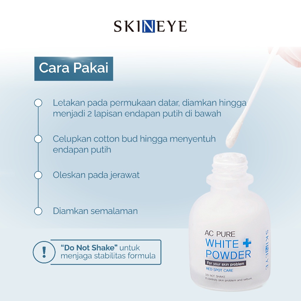 Skineye AC Pure White Powder 1 Malam Efektif Acne Treatment with Tea Tree & Zinc 20ml
