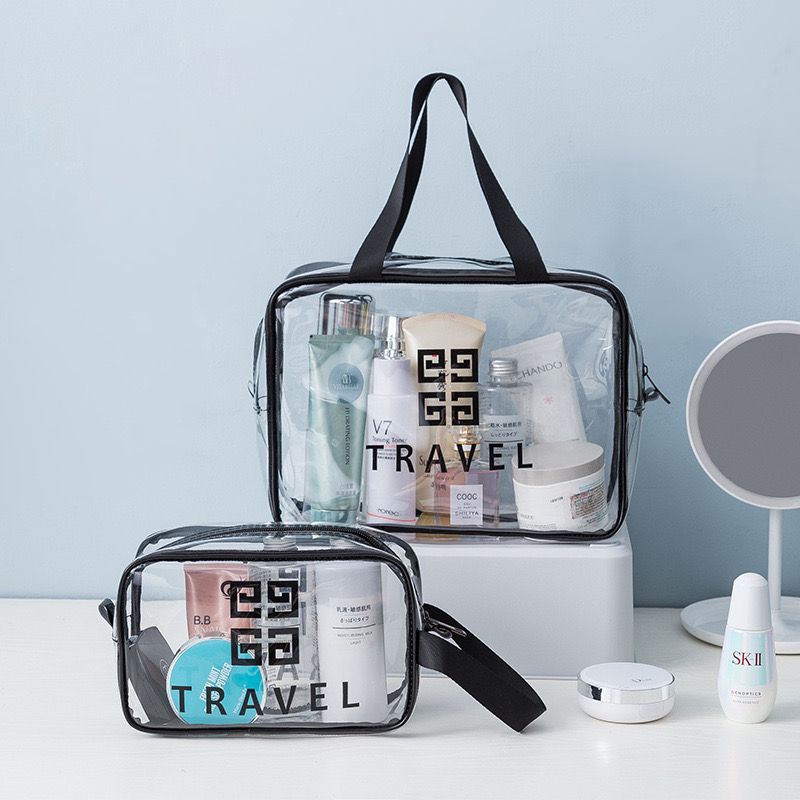 Tas Travel Jinjing Wanita Transparan/Bening Transparan - Pouch Tas Make Up Kosmetik Perlengkapan dan Peralatan Mandi/pou