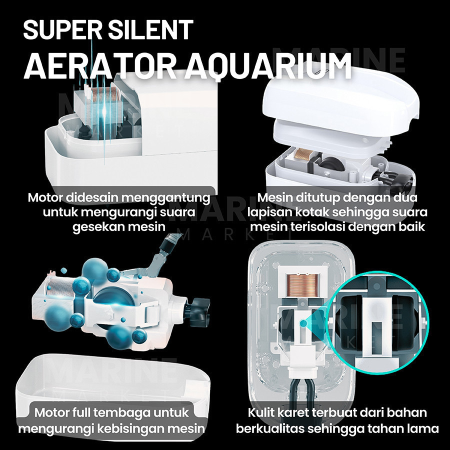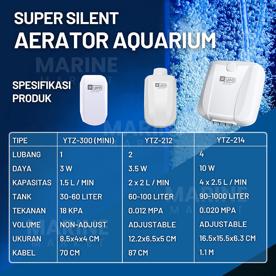 Aerator Super Silent Air Pump Pompa Gelembung Oksigen Udara Aquarium Akuarium Airator AC YEE 2 4 Lubang YTZ 300 212 214