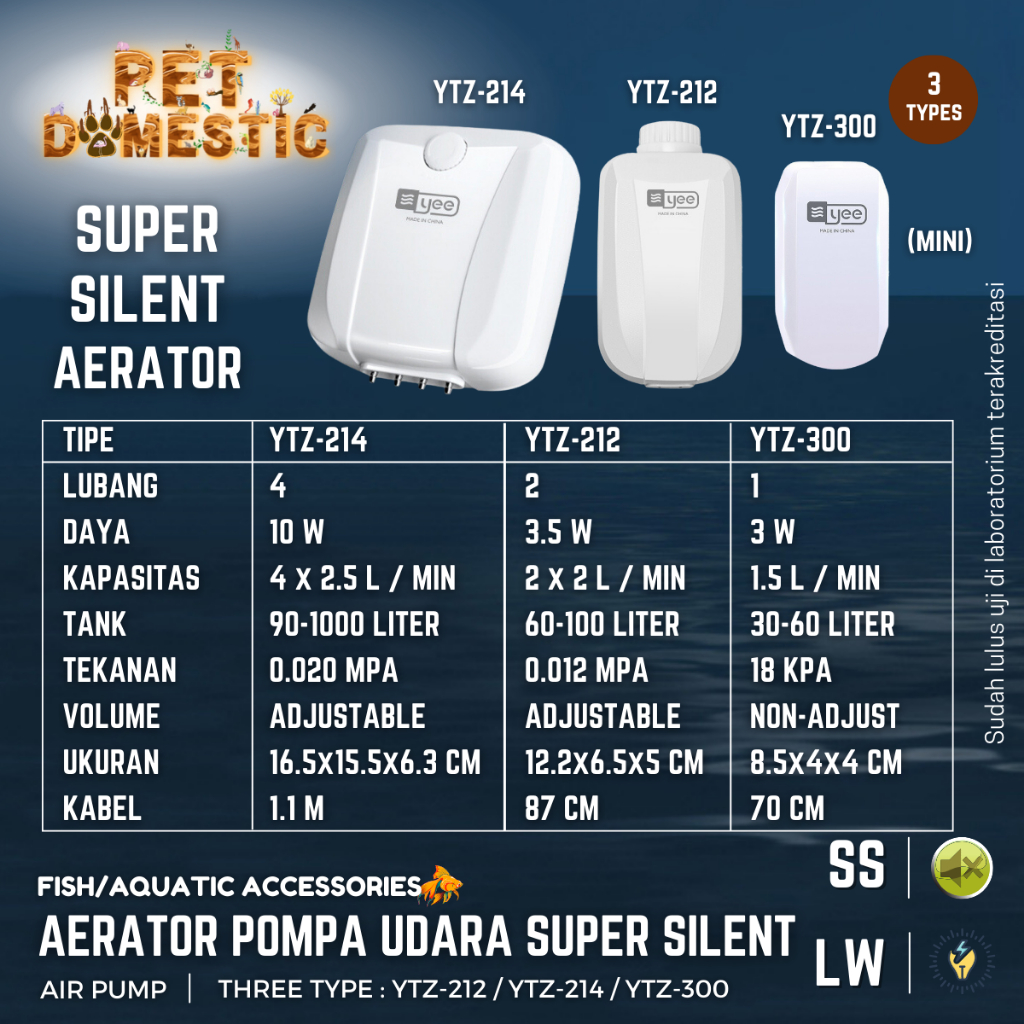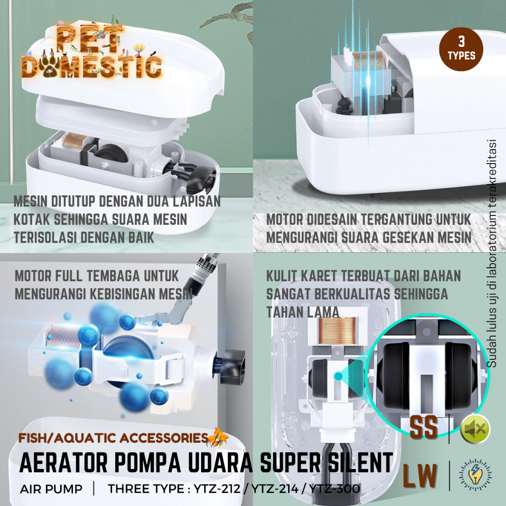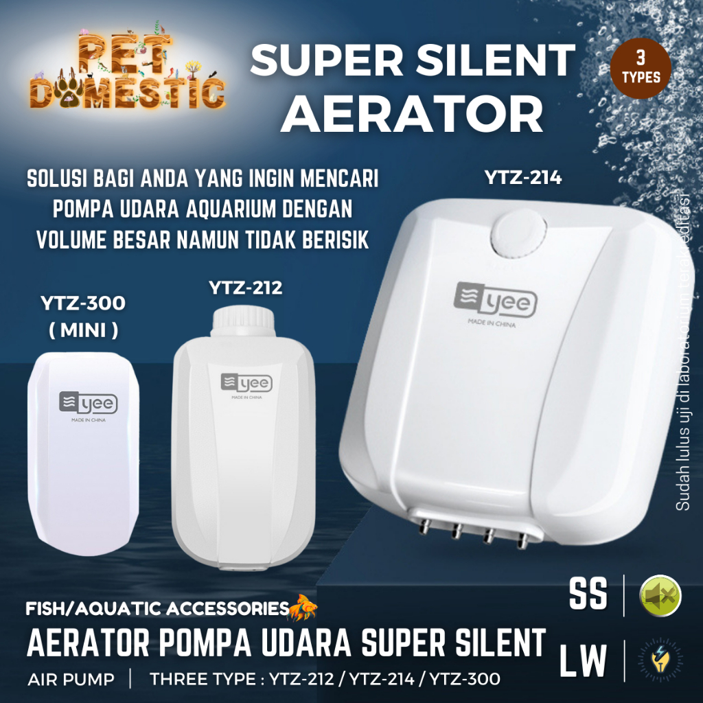 Aerator Pompa Oksigen Super Silent Air Pump Gelembung Udara Aquarium Akuarium Airator AC 2 4 Lubang YTZ 300 212 214 YEE
