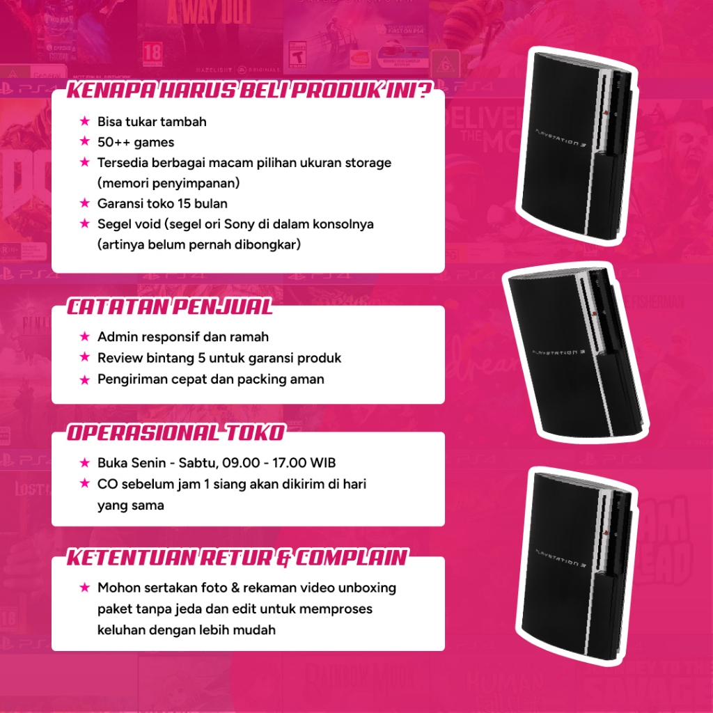 PS3 PS 3 Fat CHH 500GB 320GB 250GB 160GB Free Games Garansi