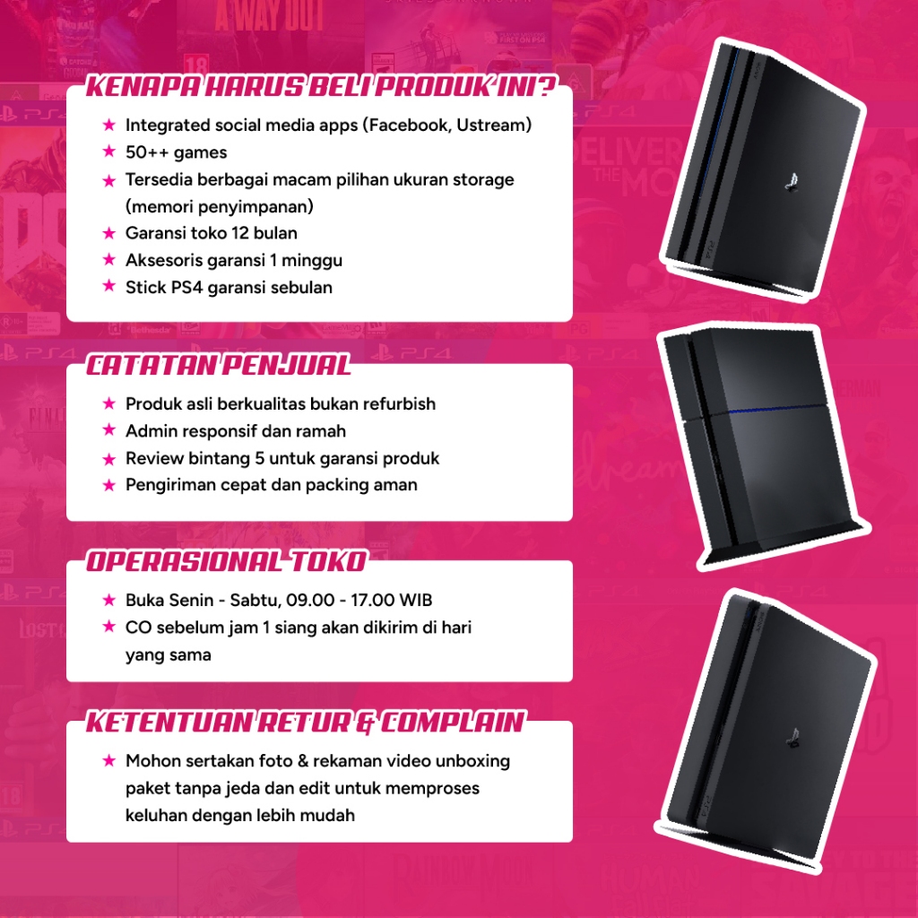 PS4 PS 4 Original Sony Second Fat Slim Pro 1TB 500GB Free Games Original PSN Permanen EA Play Garansi 1 Tahun