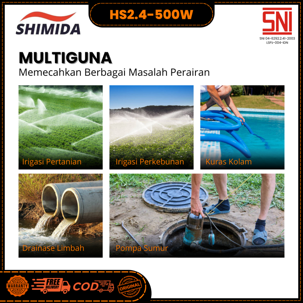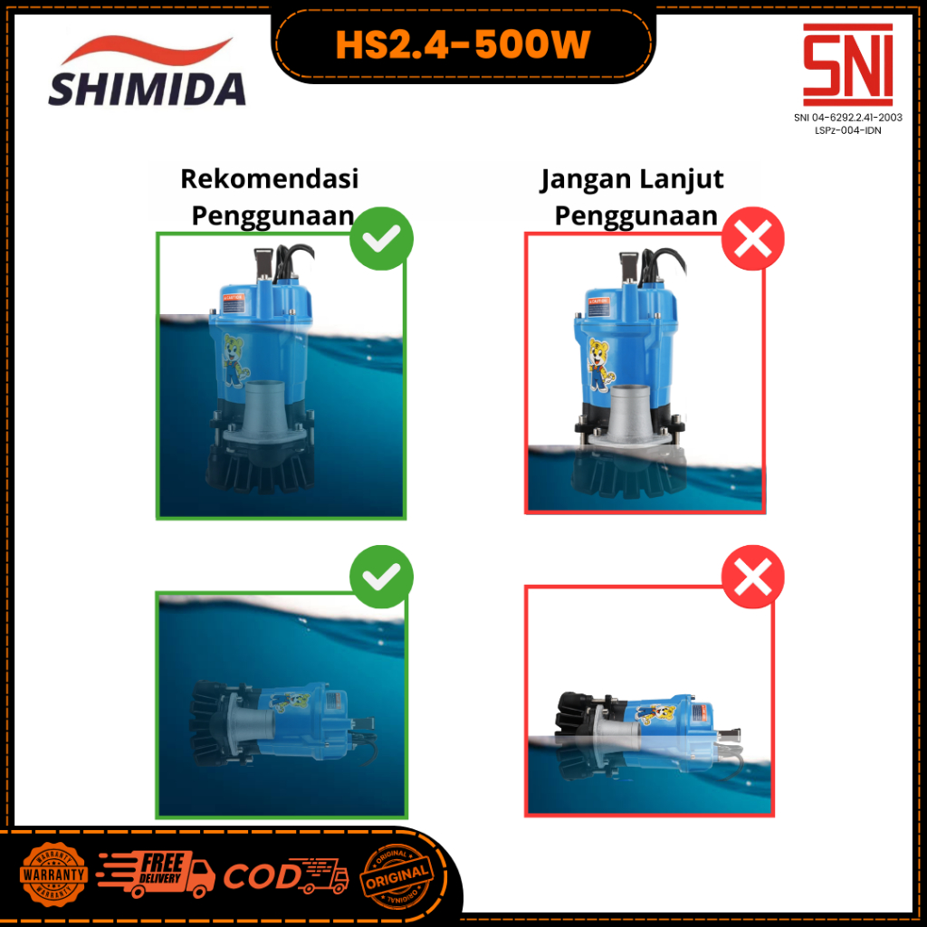 SHIMIDA Pompa Celup Air Kotor Bersih HS 2.4-500 Manual Otomatis Outlet 50mm 80mm Pompa Air Serba Guna Submersible Pump P