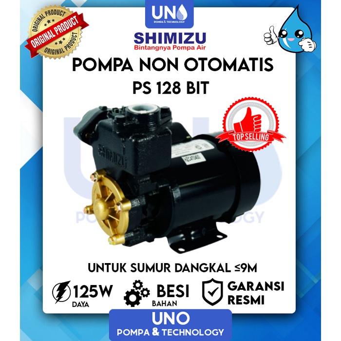 Shimizu Pompa Air Sumur Dangkal Non Auto Otomatis PS 128 BIT / PS128BIT / PS-128 BIT