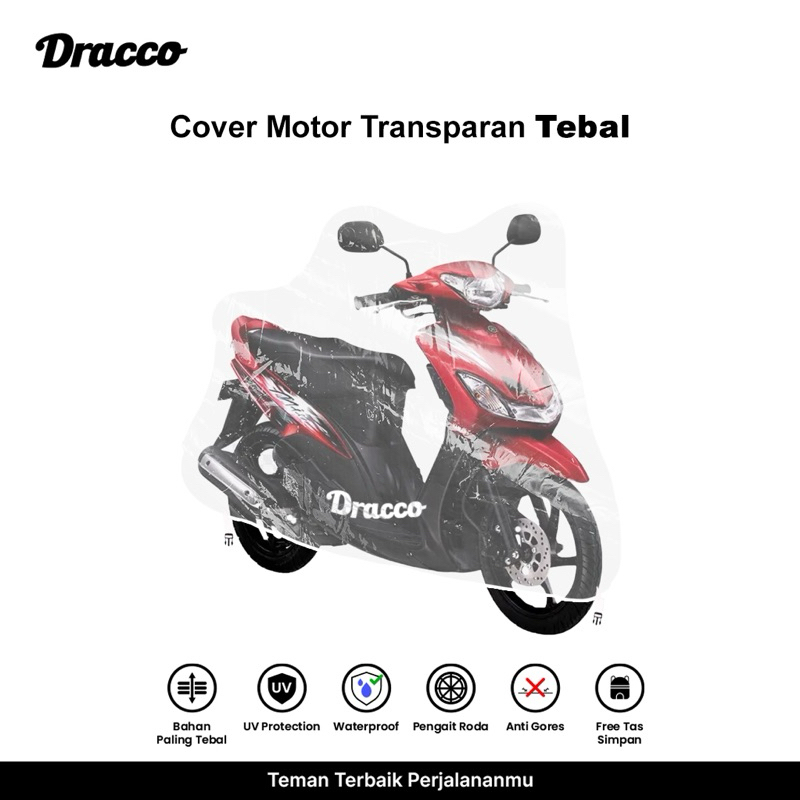 Cover Motor Transparan Premium Dracco Tebal-Sarung Anti Air & Debu, Waterproof, Uv Protection + Tas