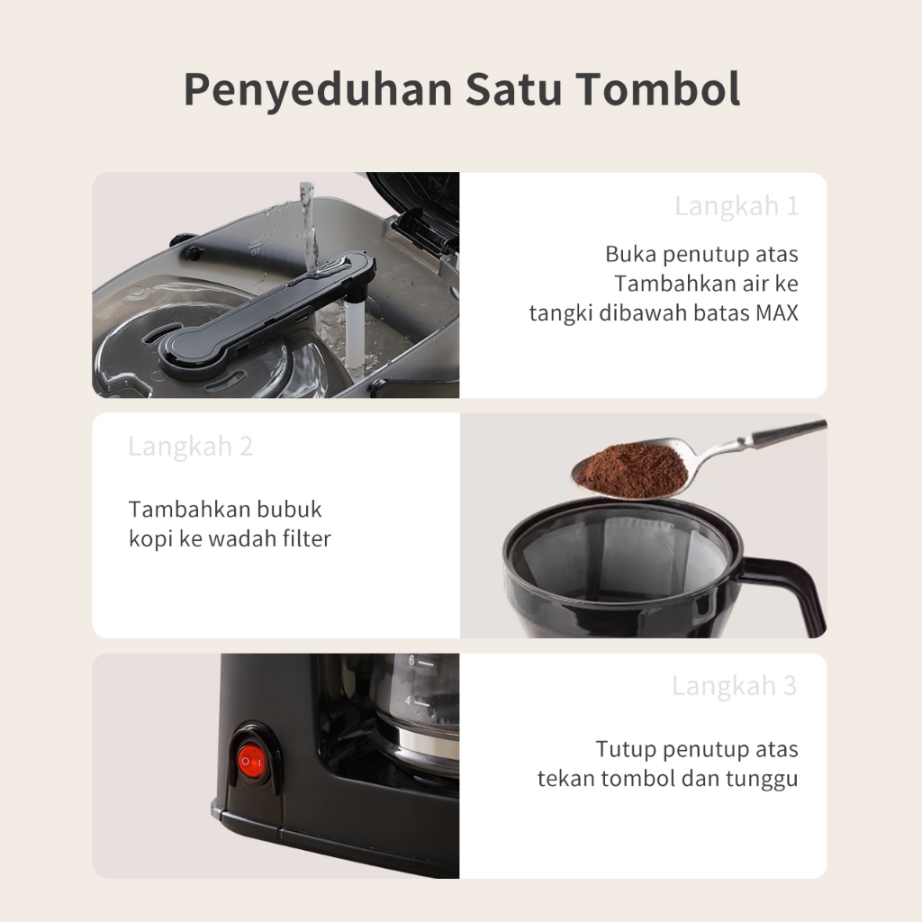 Simplus Mesin Kopi 1.25L Coffee Maker Filter Otomatis Penetesan dan Penuangan Untuk Kopi dan Teh