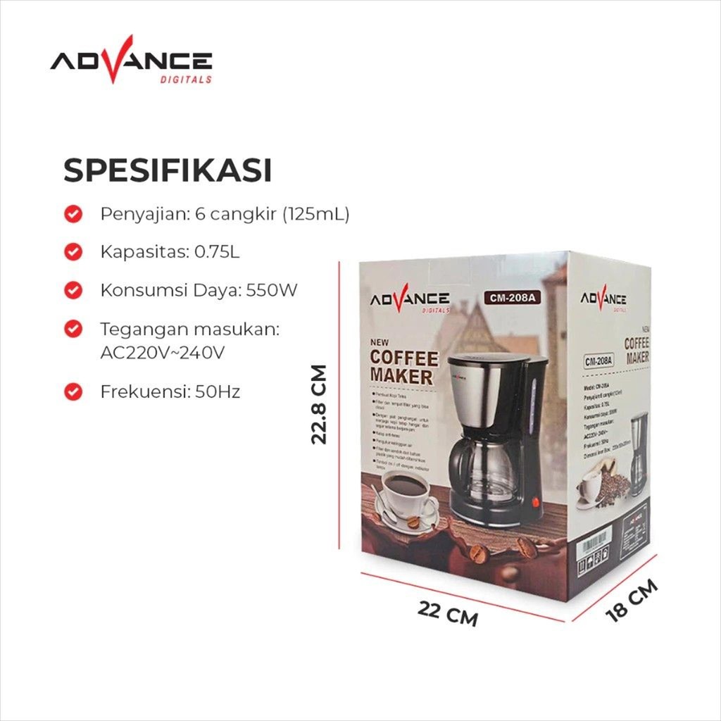 ADVANCE CM-208A / CM208A COFFEE MAKER MESIN PEMBUAT KOPI 0.6 L