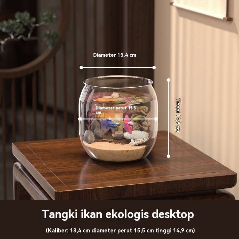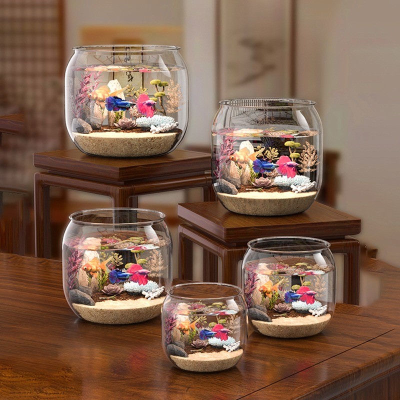 Aquarium Bulat Plastic Mini Aquarium Toples Bulat Ikan Hias Aquarium Toples Bulat Kura-Kura Wadah Tanaman Hias Hidroponi