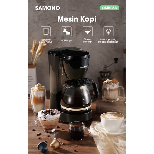 Samono 750ML Coffee Maker Mesin Kopi Multifungsi 2 in 1 Anti Bocor 600Watt Low Watt Bahan Plastik SW-CMB06B Black