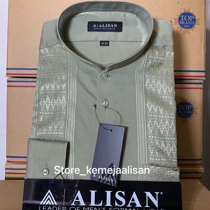 Koko Panjang Alisan Bordir Lengan Panjang Warna Sage Coklat Abu Olive - K.Bordir Putih, S (14,5-33)