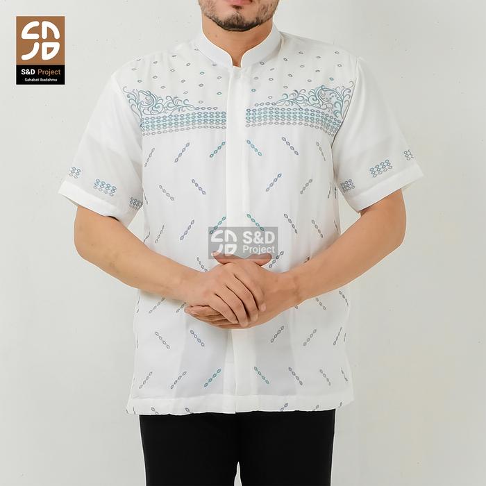 S&D Project Baju Koko Muslim Seri 36 Bahan Polikatun Warna Putih Tulang Jumbo M-4Xl Untuk Pria Dewasa Lengan Pendek Moti