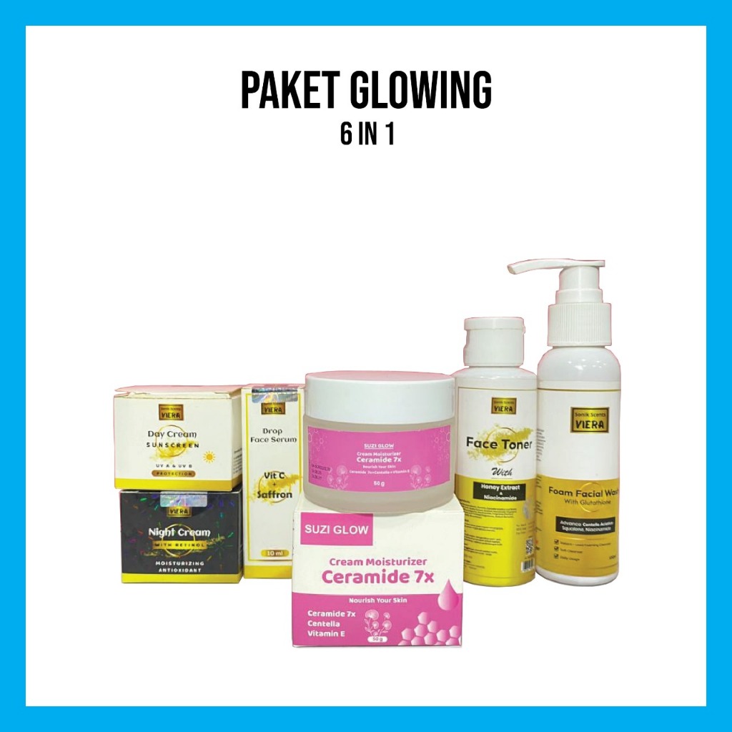 SONIK SCENTS Paket Komplit Glowing 6 in 1 (Moisturizer Ceramide, Day Cream Sunscreen, Night Cream Retinol, Serum Vit C,