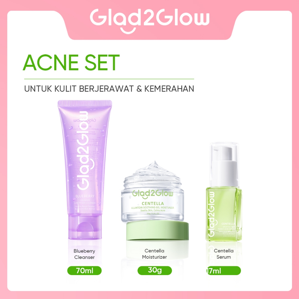 [Glowing&Repair]Glad2Glow Glowing Set Sehat&Lembap Bundle 4In1 Paket Skincare| Moisturizer Serum Face Wash Glowing Kit D