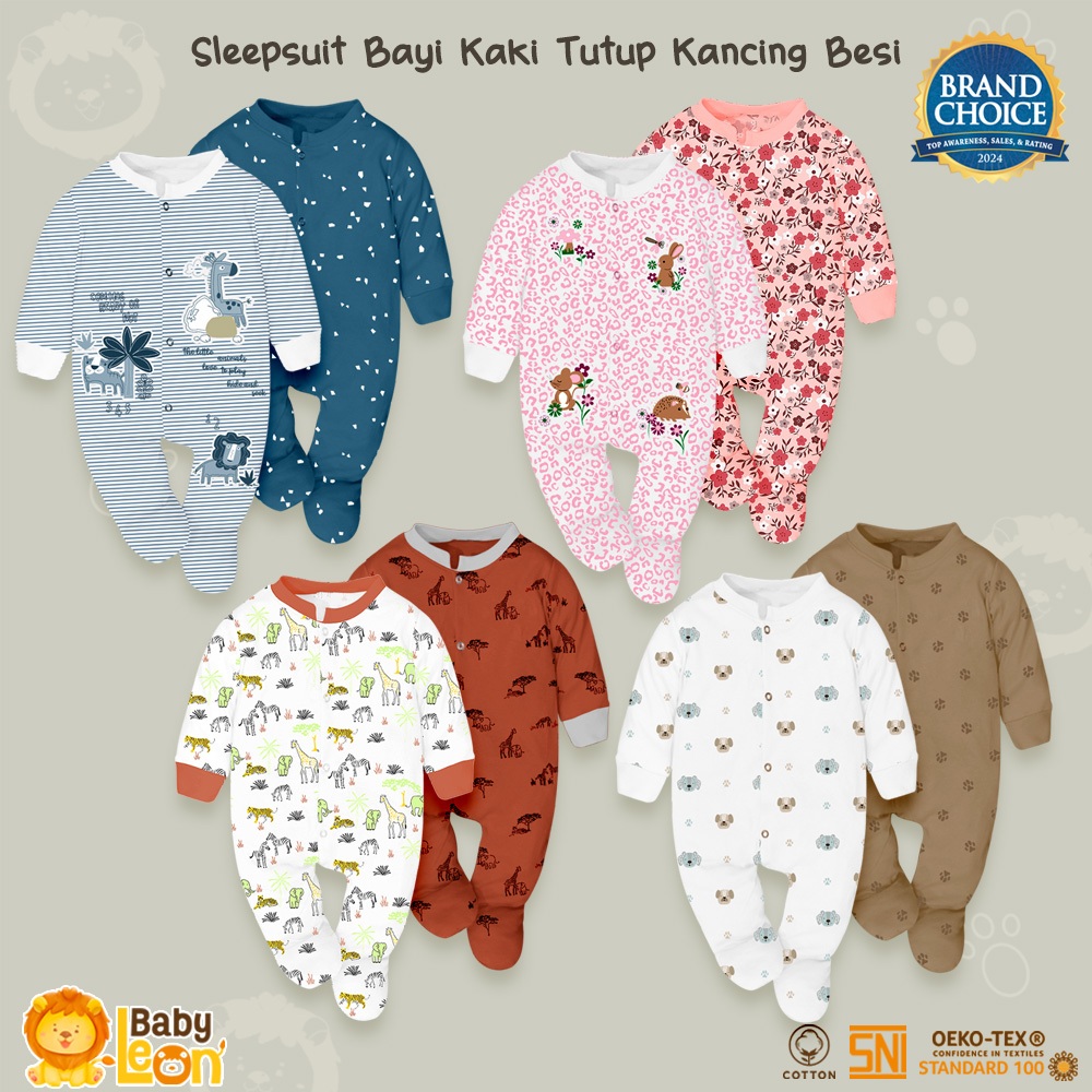 BABY LEON SLEEPSUIT BAYI TUTUP KAKI SLEEPSUIT NEWBORN BAJU ANAK PEREMPUAN 0 12 BULAN GY-052