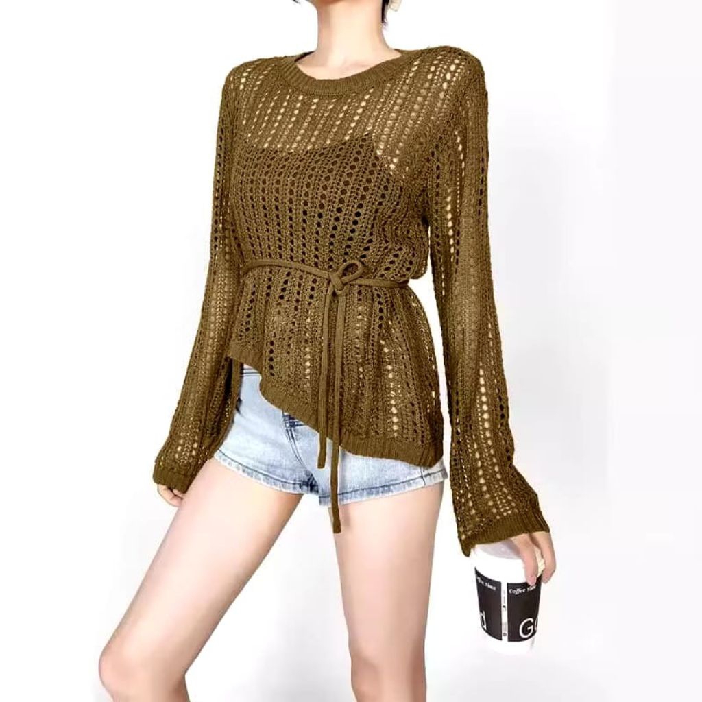 YURUMA Blouse Jaring Variasi Tali / Atasan Rajut Wanita Kekinian - 2 Ukuran