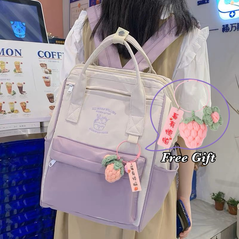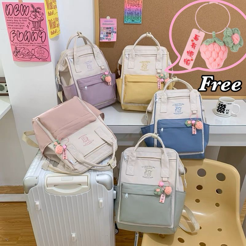 Ready / Free Gantungan Lucu Tas Sekolah Korean Style Tas Ransel Wanita Backpack Remaja Anak Korea Fashion Tas Laptop wan