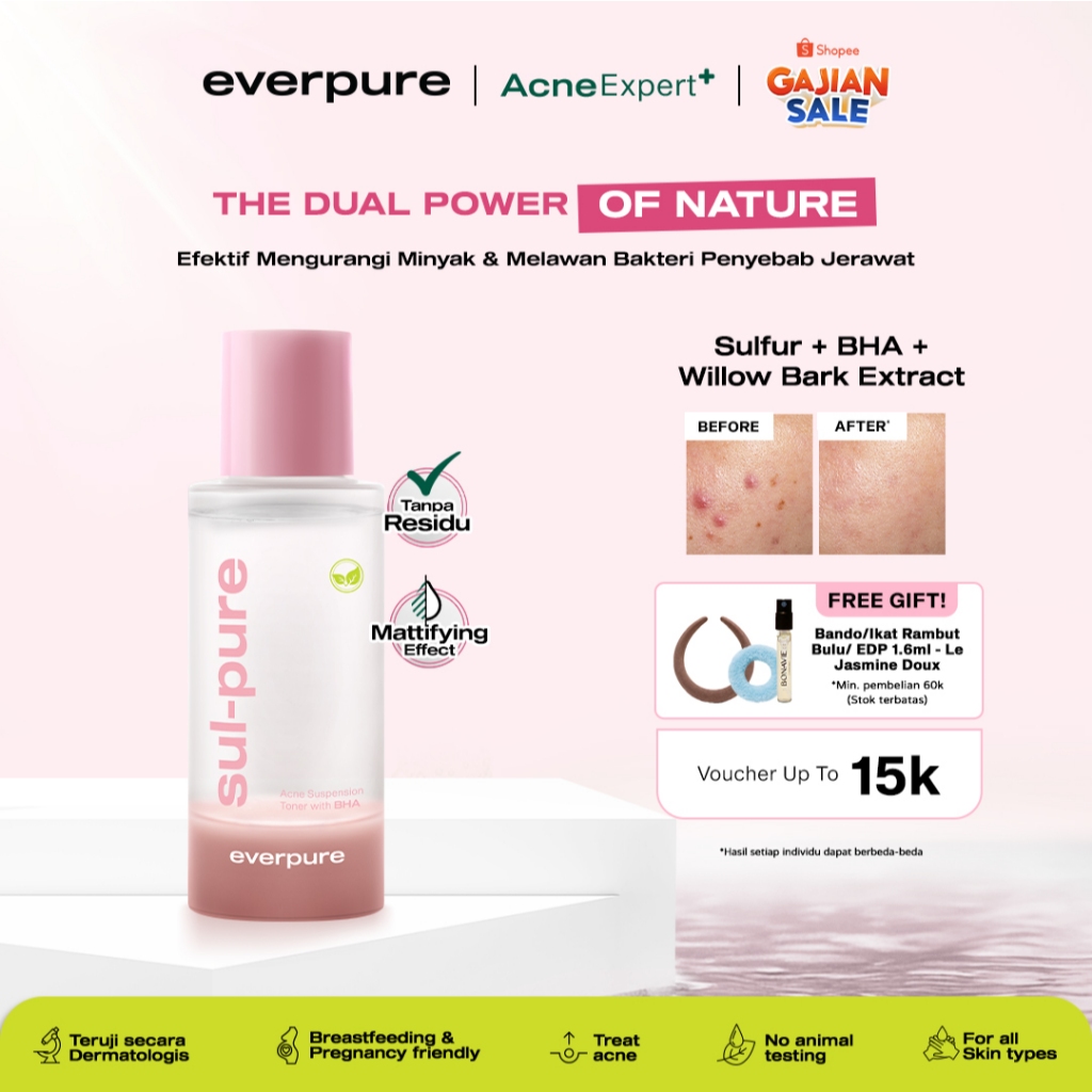 EVERPURE Sul-pure Acne Suspension Toner with BHA - Toner Kulit Wajah Berjerawat Tanpa Residu Dengan Sulfur dan BHA [BPOM
