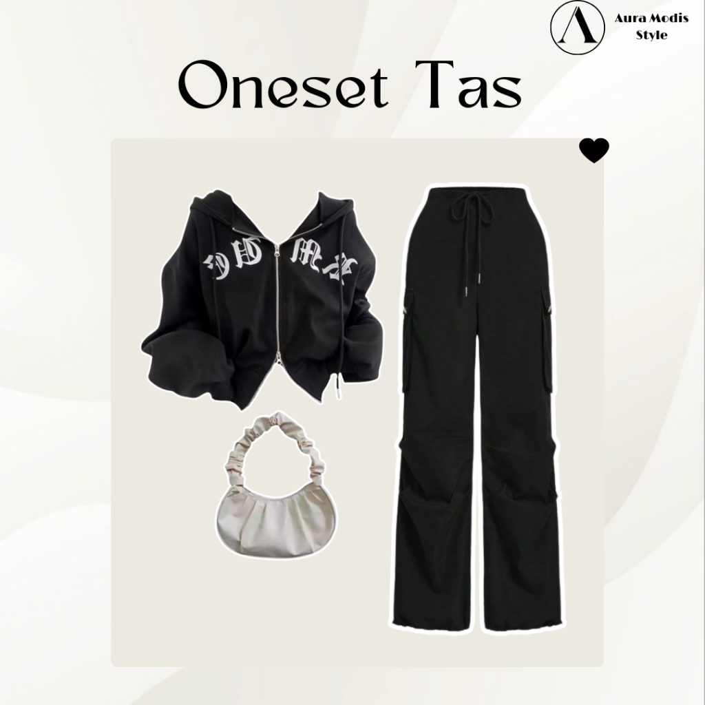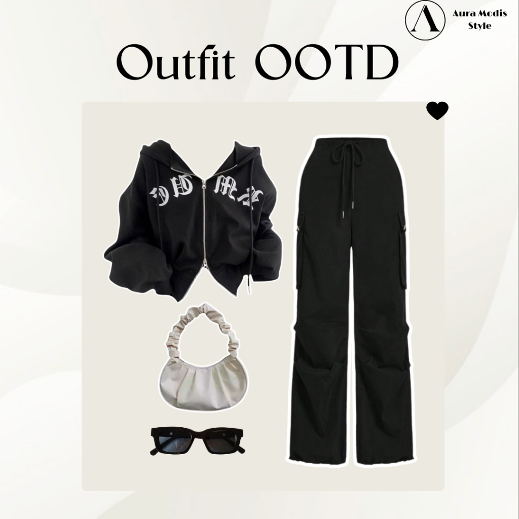 Setelan 4in1 Wanita Premium | Sweater Crop Fleece Adem | Celana Cargo Hitam Jumbo Anti Gerah | OOTD Korean Kekinian AM243R