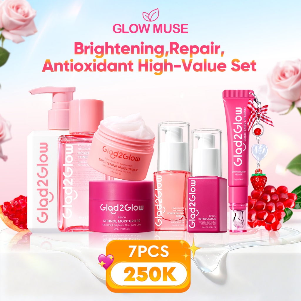 [100 PERSEN ORI]Glad2Glow Day&Night Renew & Outting Bundle 7in1 - 7 PCS Barrier Skincare Paket Brightening Moisturizer + Retin