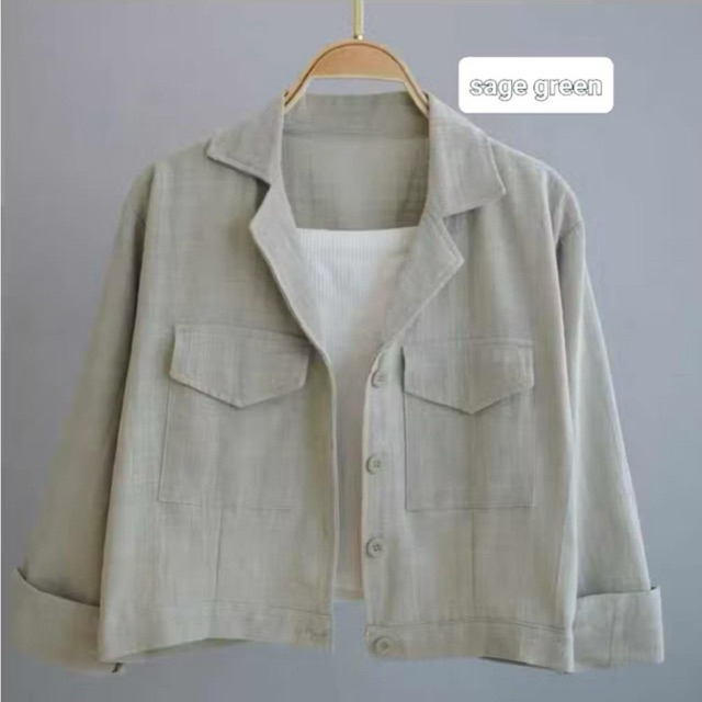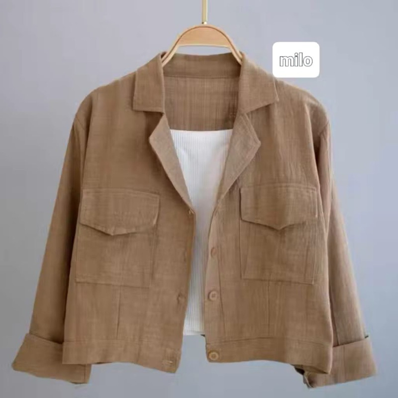 Kemeja her Wanita Linen Kantong Depan Basic Shirt / Kemeja Crop Top Wanita Lengan Panjang Korean Style