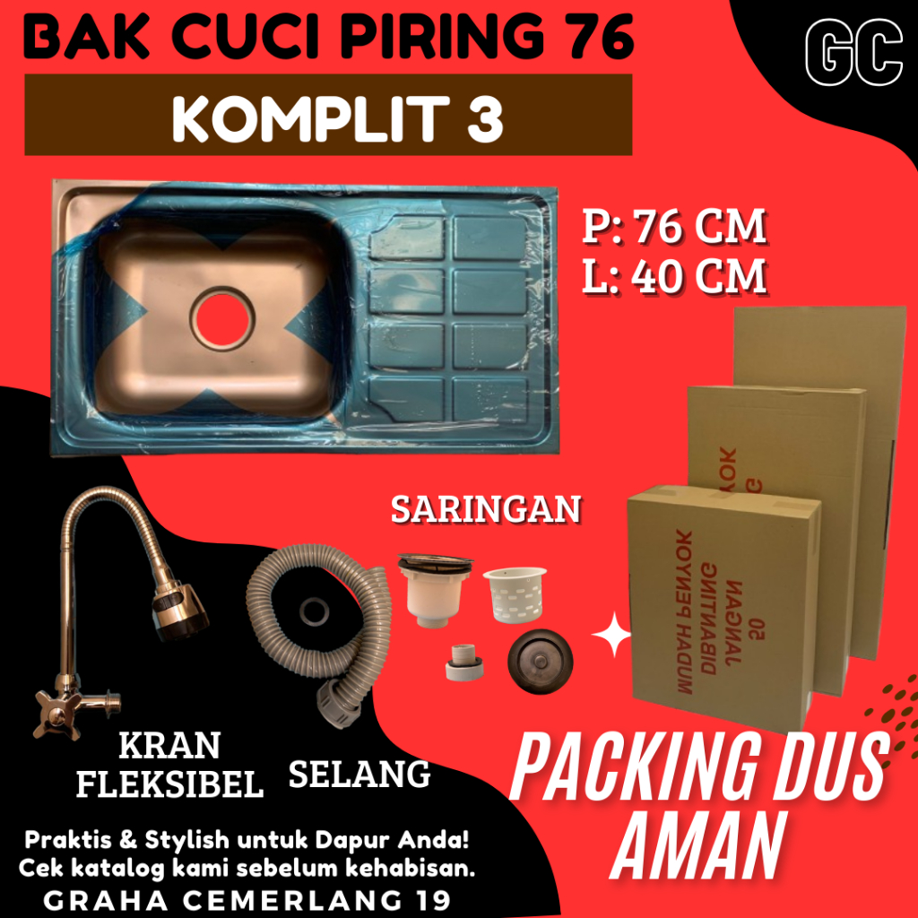 BAK CUCI PIRING 76CM / WASTAFEL 76 CM X 40 CM / SINK STAINLESS STEEL + SAYAP