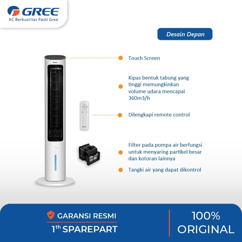 GREE Tower Fan Air Cooler dengan Generator Anion Kapasitas 4 Liter GTA-ACOOL4 Penyejuk Humidifier