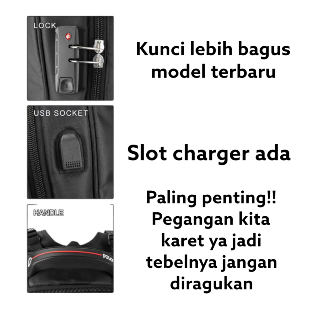 Polo GIVES 20 In EXPANDABLE Tas Ransel Kerja Tas sekolah Kunci Usb Port Polo Raincoat Import