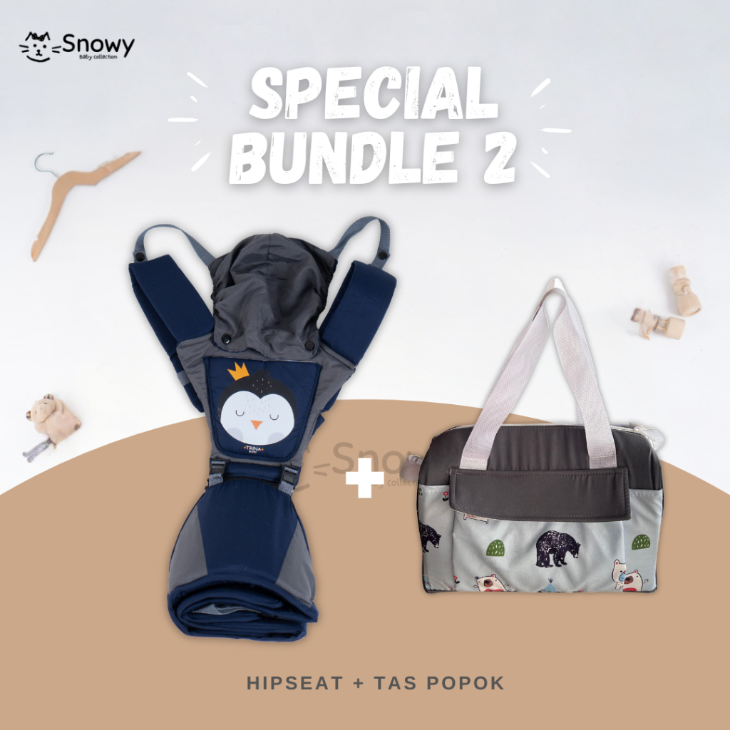 BUNDLE GENDONGAN BAYI HIPSEAT DEPAN + TAS POPOK MULTIFUNGSI PAKET PERLENGKAPAN BAYI SNOWY BABY