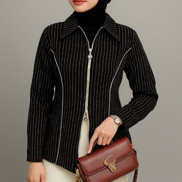 DYFFA Zipper Shirt Salur Fitted Korea Style