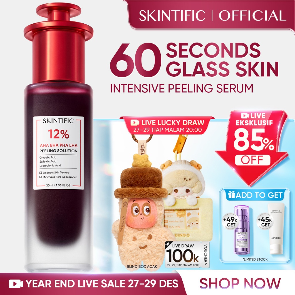 SKINTIFIC – 12 PERSEN Acid Peeling Solution Glowing Serum Essence Eksfoliasi Wajah & Tubuh Cocok untuk Kulit Berjerawat, Komed