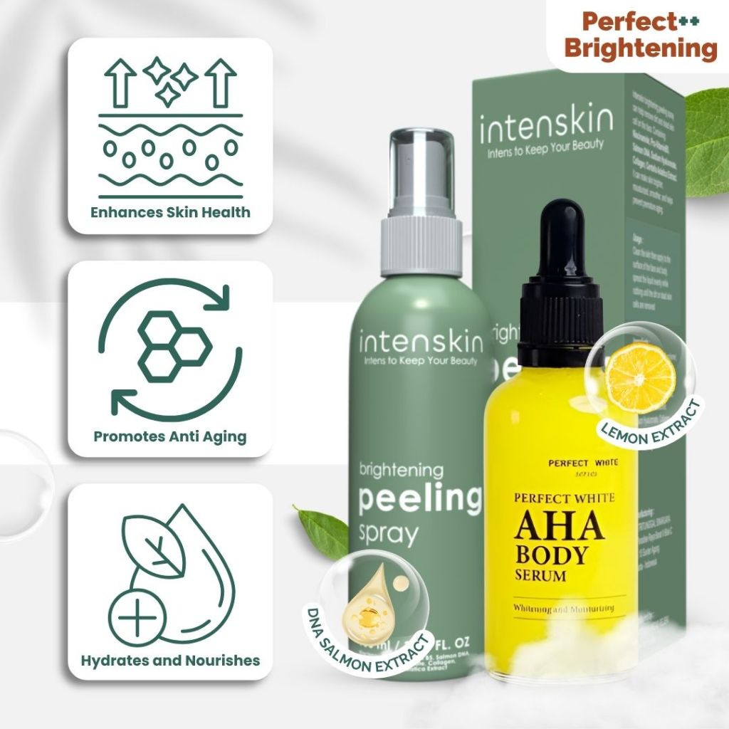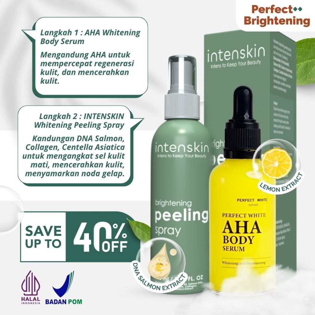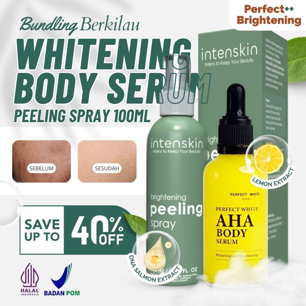 PAKET BERKILAU - AHA WHITENING BODY SERUM + INTENSKIN WHITENING PEELING SPRAY 100 ml