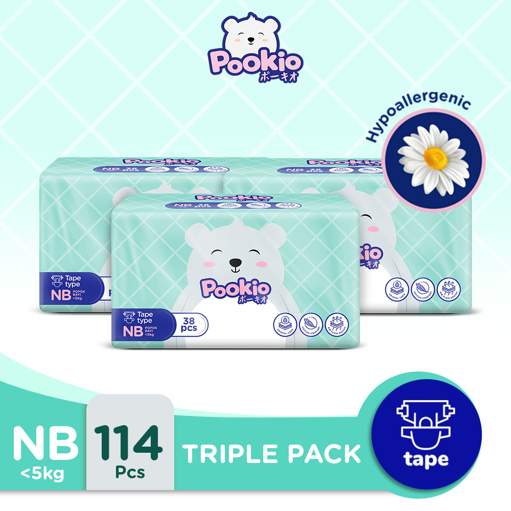 POOKIO Tape Popok Bayi Diaper New Born Perekat NB38 (3 Bag)