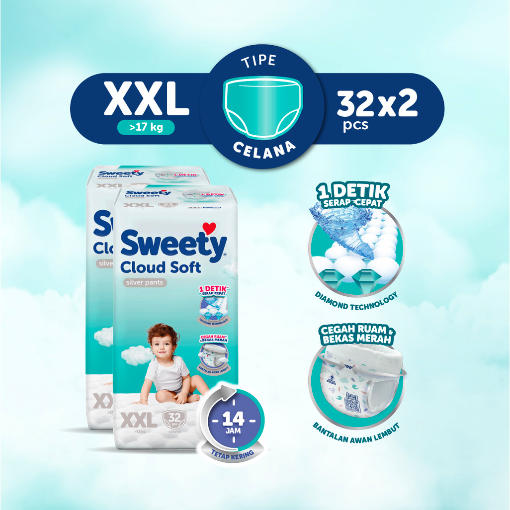 Sweety Silver Pants Cloud Soft XXL 32s x 2 Popok Celana Baby Diapers