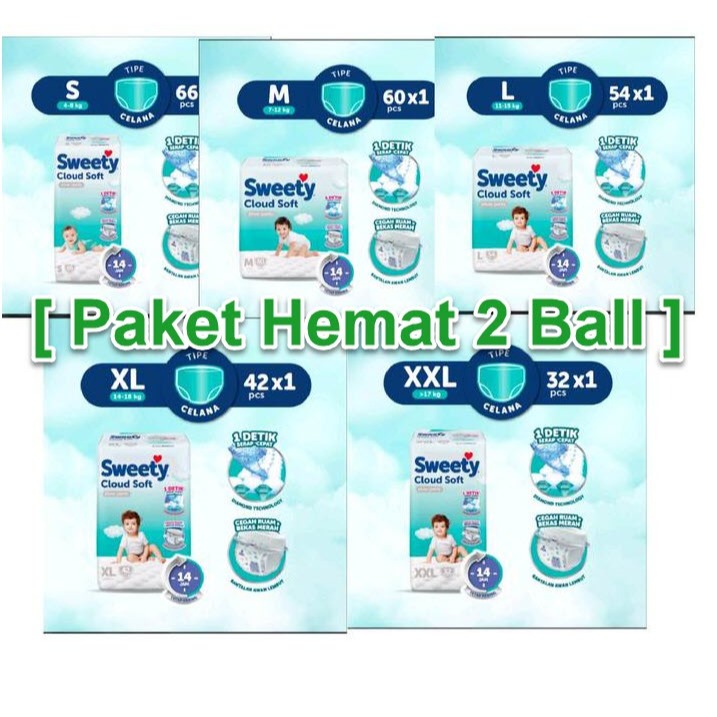 [Paket isi 2] Sweety Silver Pants Jumbo Popok Celana S66/M60/L54/XL42/XXL32