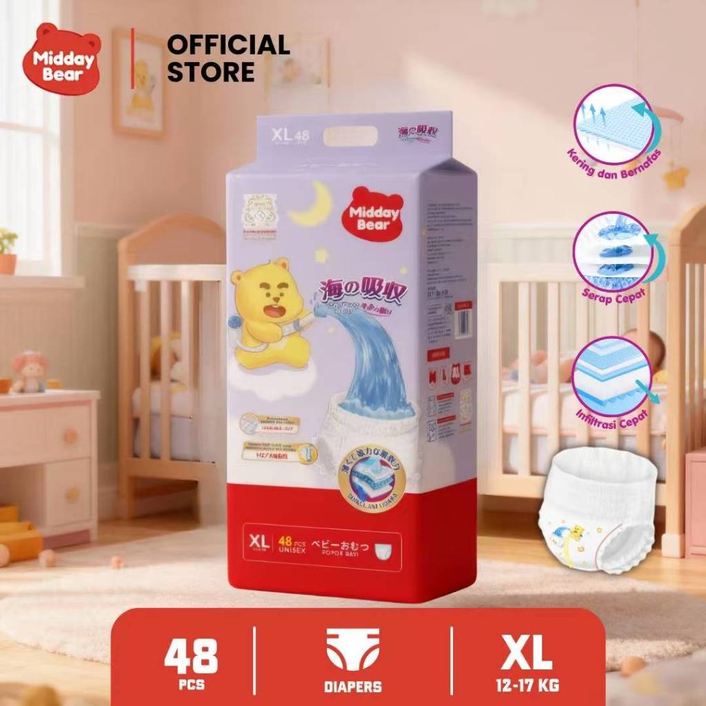 (1 Pack) Popok Celana Midday Bear Ultra Jumbo All Size – Diapers Super Lembut, Daya Serap Tinggi, Anti Bocor, Aman untuk