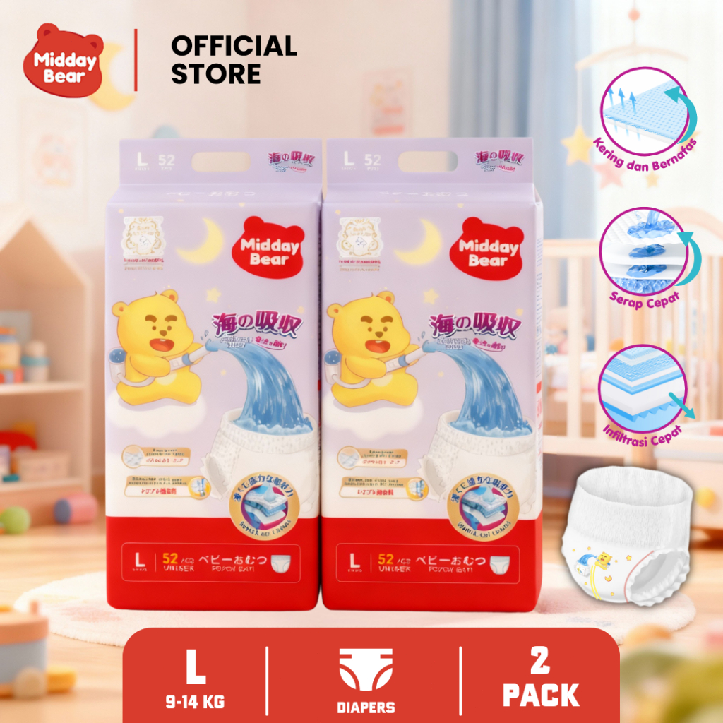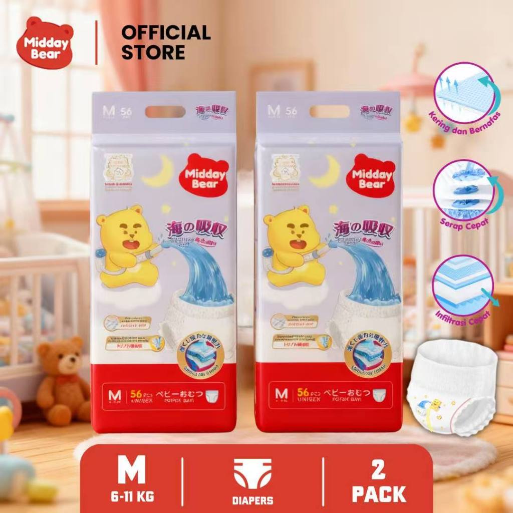 (2 Pack) Popok Bayi Midday Bear Ultra Jumbo Pants All Size – Lembut, Cepat Serap, Anti Bocor, Tidak Gampang Ruam, Nyaman