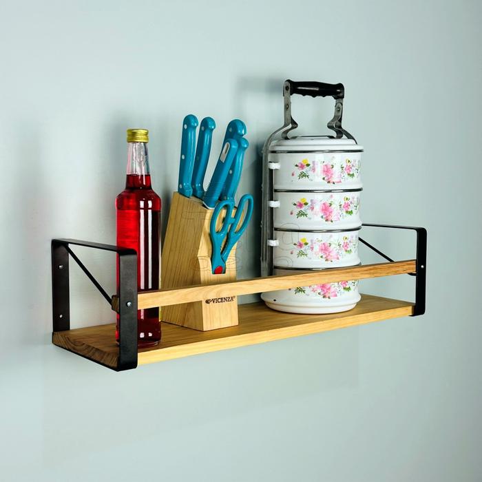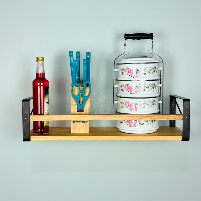 Rak Dinding Serbaguna Industrial Minimalis Rak Buku Dapur Kayu Besi Jati Belanda - Lebar 15 Cm, Panjang 30 Cm