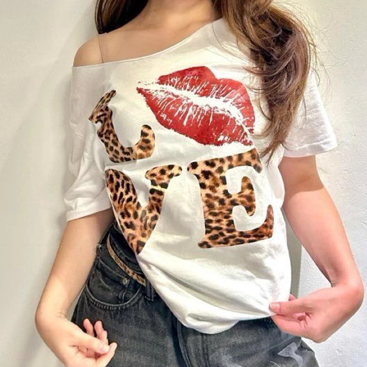 NewRemay. Sabrina t shirt Korean style LOVE Red Lips kaos baju wanita retro/368