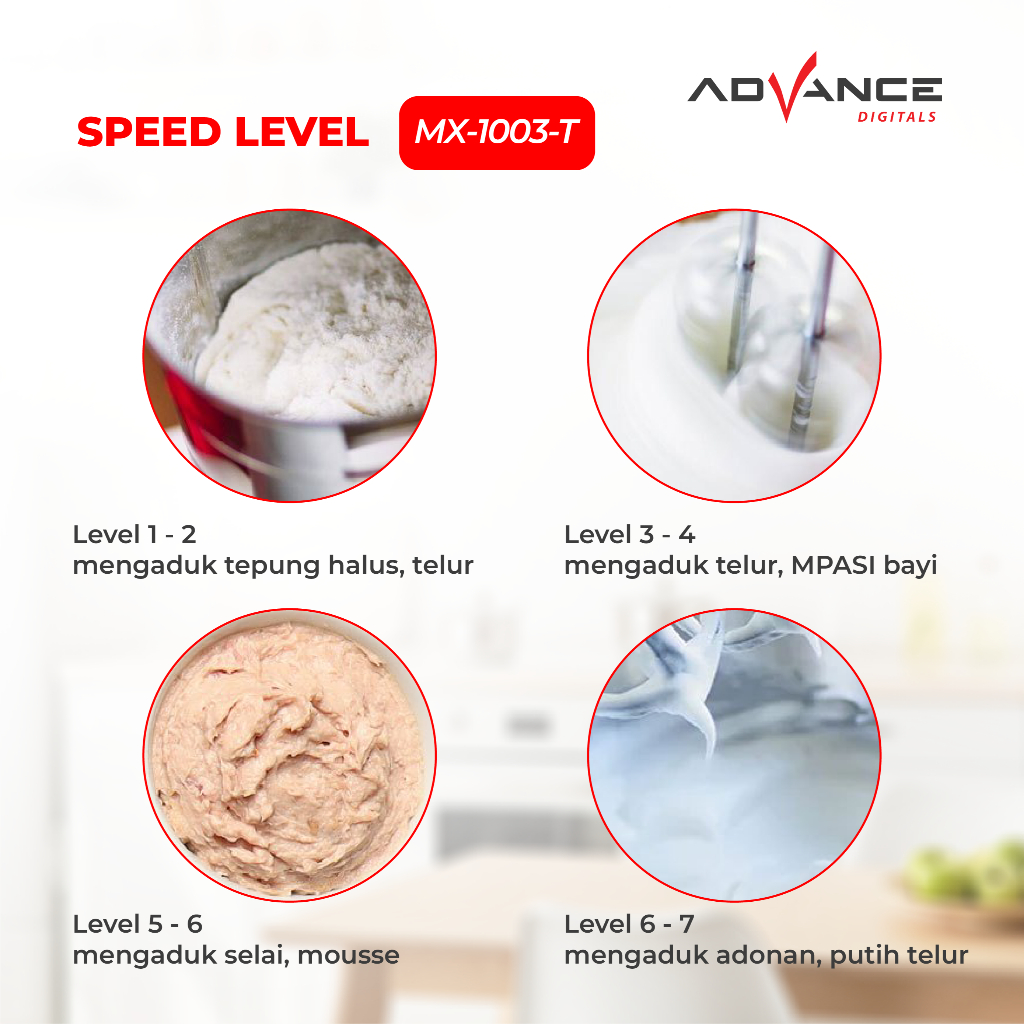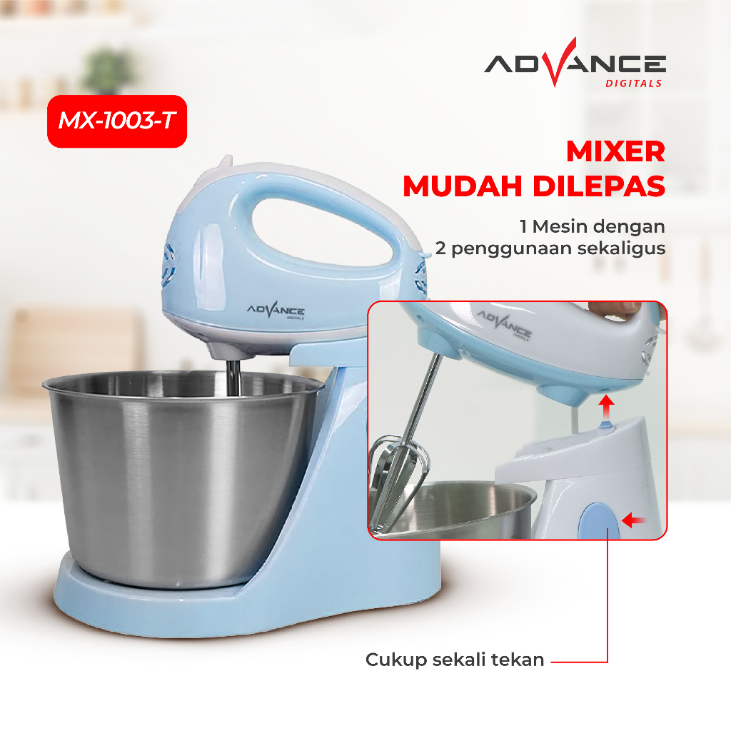 Advance Stand Mixer MX-1003T Pengaduk Adonan Kue 2in1 7 Kecepatan 3 L Garansi Resmi 1 Tahun