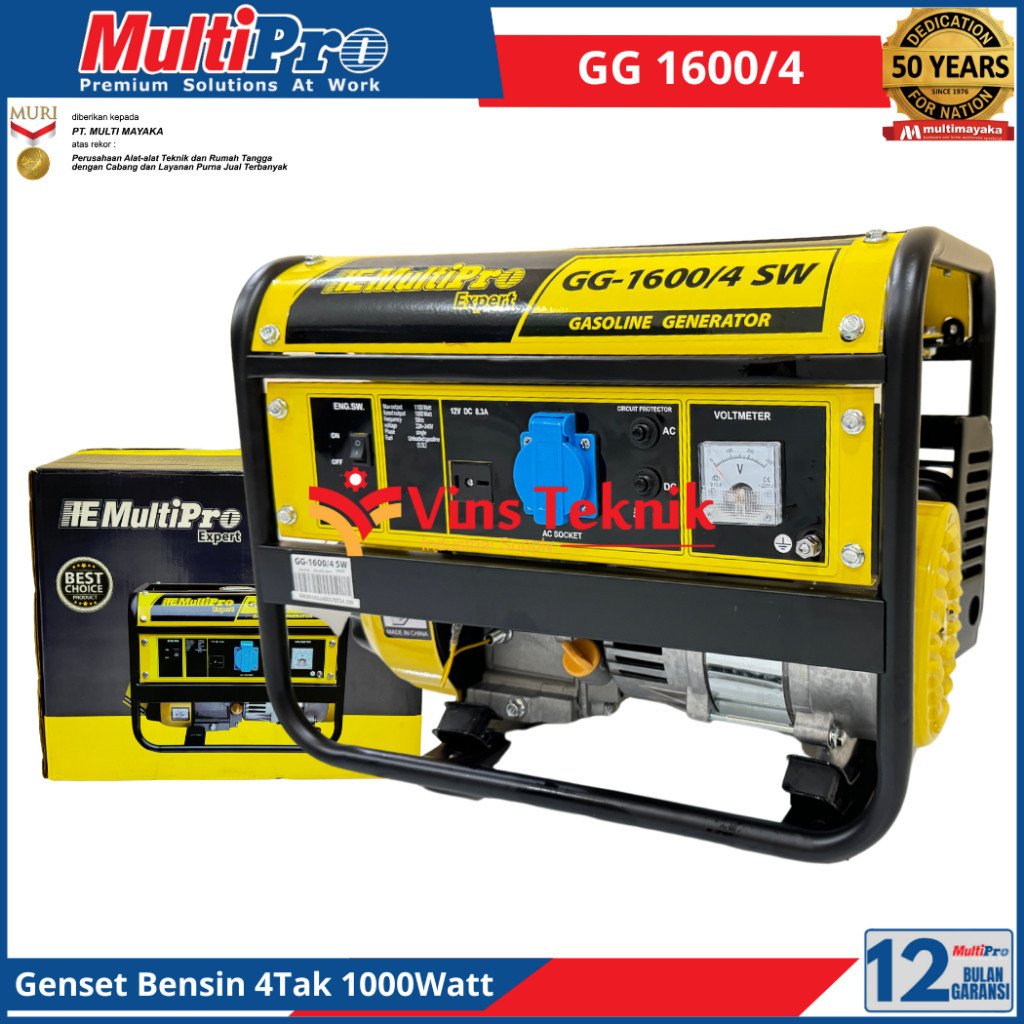 Multipro GG1600/4 Mesin Genset Listrik Bensin Gasoline Generator 1000Watt GG 1600
