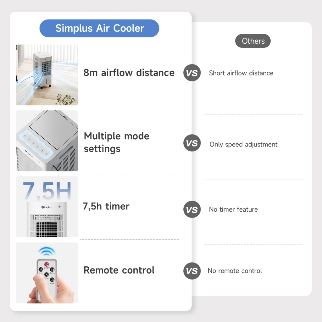 Simplus Air cooler Kipas Angin Pendingin Kipas AC Rumahan Tangki 10L Jangkauan Udara Luas