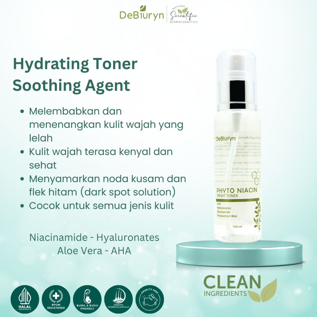 DeBiuryn Phyto Niacin Hydrating Toner Essence - Glowing Brigtening Mencerahkan Wajah Kusam Kering Flek Hitam Komedo