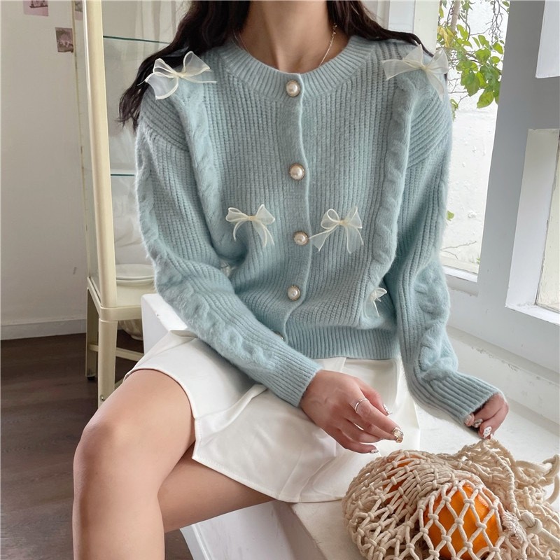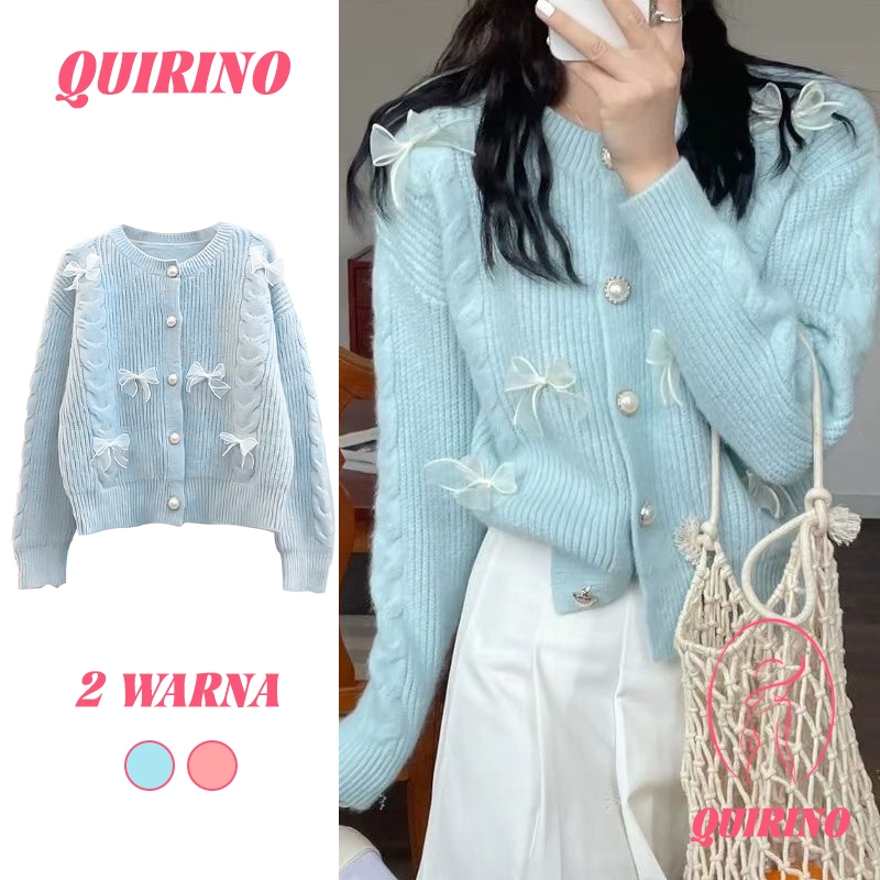 QUIRINO - Atasan Sweater Cardigan Rajut Pita Ribbon Elegan Terbaru Korean