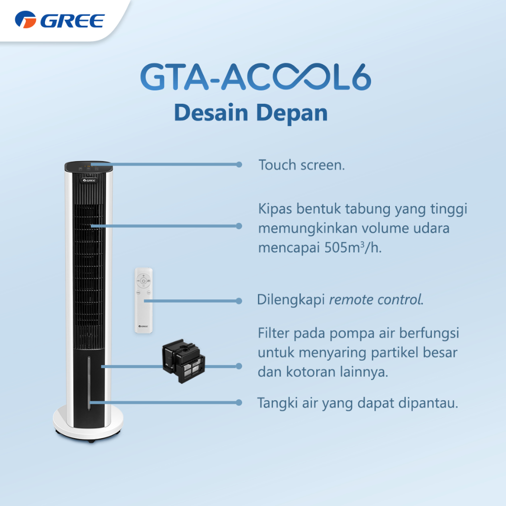 GREE ACOOL 6 Tower Fan Air Cooler Model GTA-ACOOL6 Kipas Angin Penyejuk Ruangan 6 Liter with ACOOL 4 Kapasitas 4 Liter