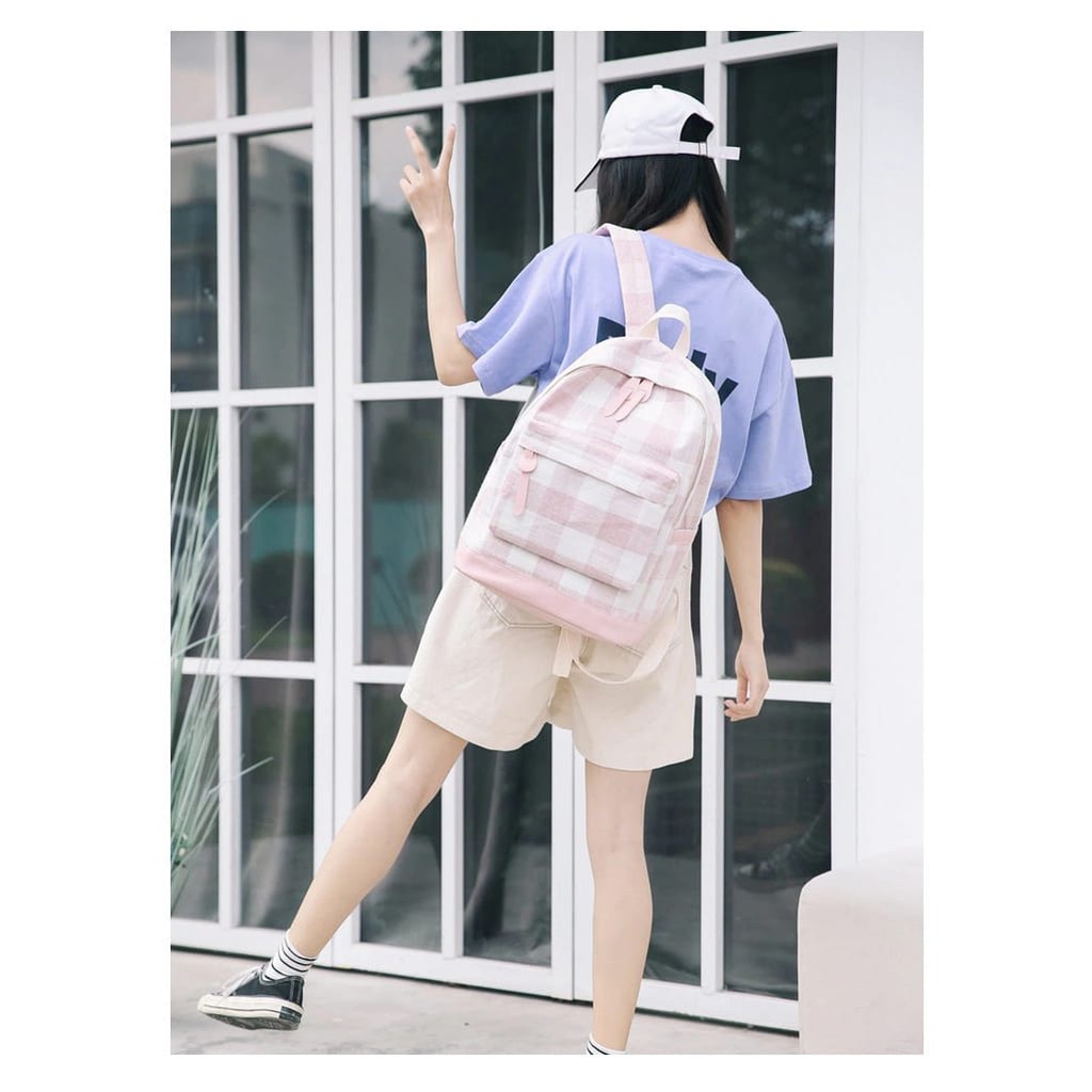 Diobrale - Tas Ransel Anak Perempuan Bisa Cowok Motif Kotak Tas Ransel Sekolah TK SD SMP Kekinian