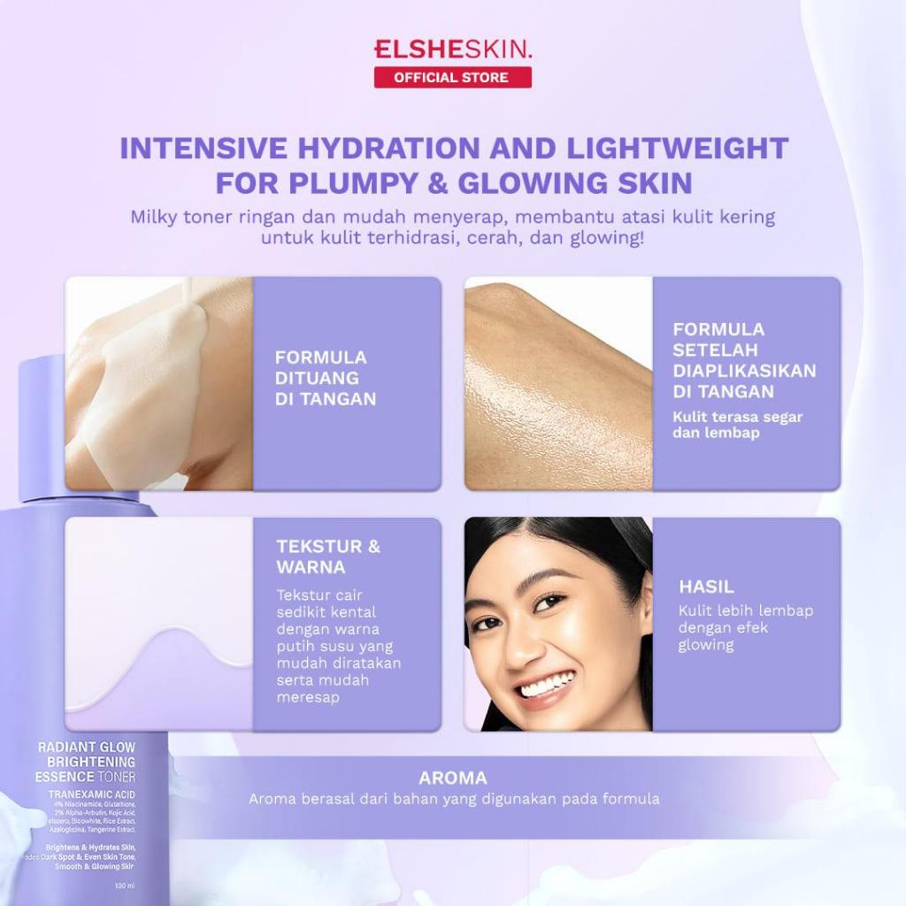 Elsheskin Radiant Glow Brightening Essence Toner 100ML - Skincare - Brightening Toner, Cleanser, Moisturizer untuk Mence